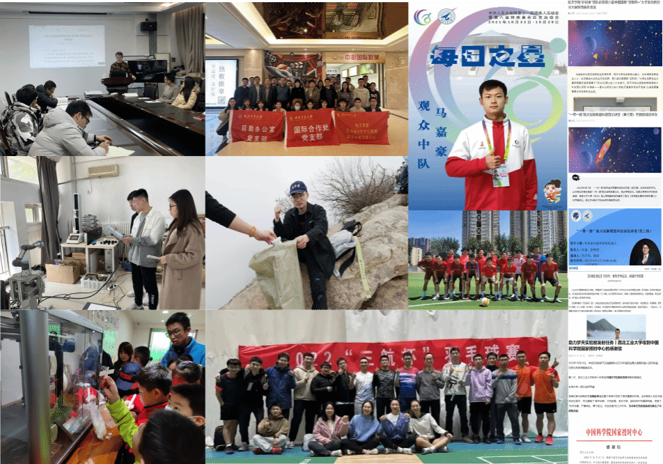 展青年风貌:团队成员在注重学术能力培养的同时,积极参与学生工作,聚焦学生事务,担任班长、支委、助管等,支持学校日常工作开展。团队成员主动承担社会责任,积极参加志愿服务活动,定期进行社区志愿科普,秦岭生态保护等工作,年服务时长超500小时。团队坚持劳逸结合的健康发展宗旨,注重团队成员的身体素质培养,积极开展各项体育活动,并取得了较好的赛事成绩。团队相关事迹获得省级、校级、院级宣传报道30余篇。