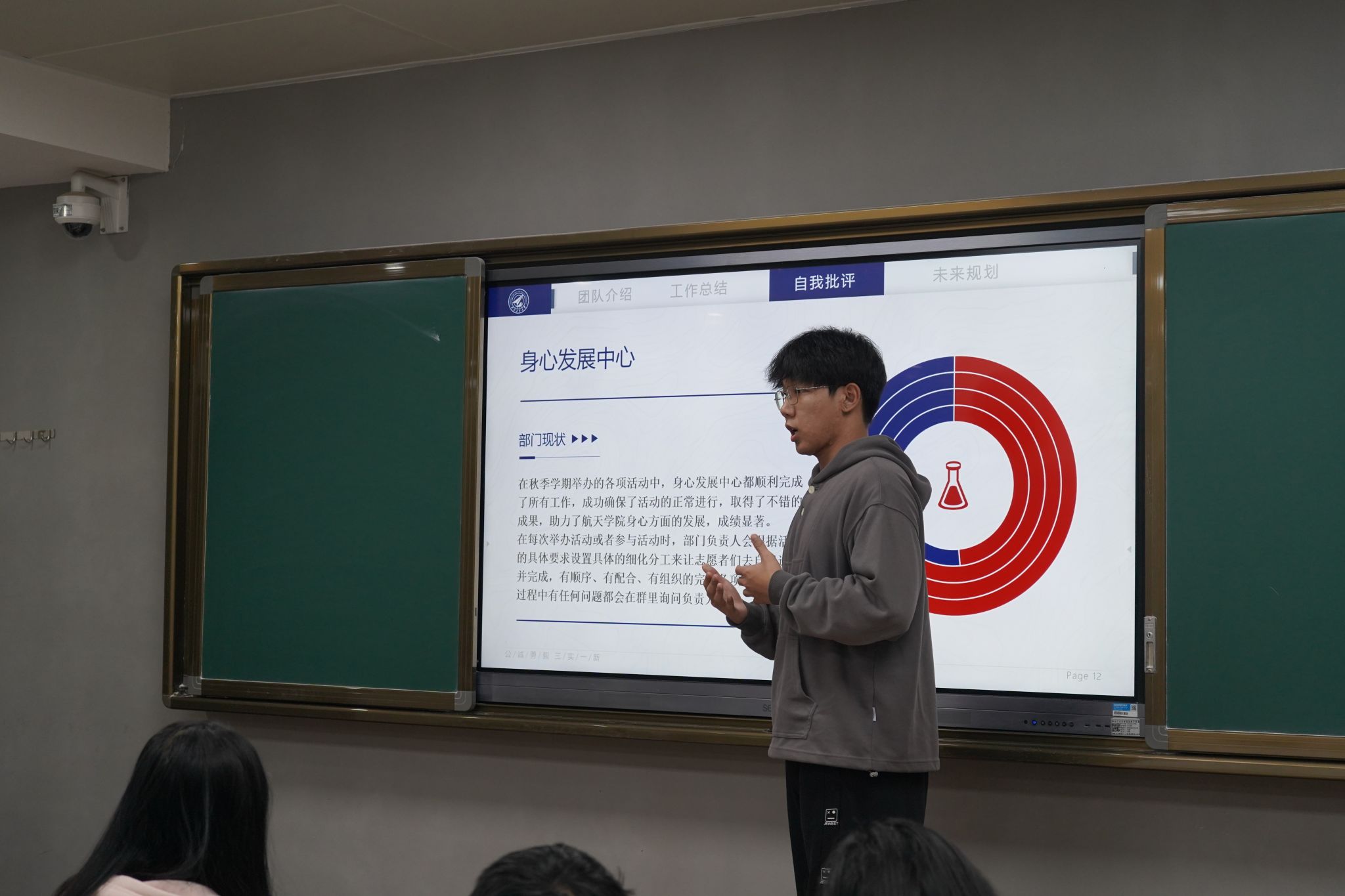 学生会主席团成员刘洋进行工作汇报