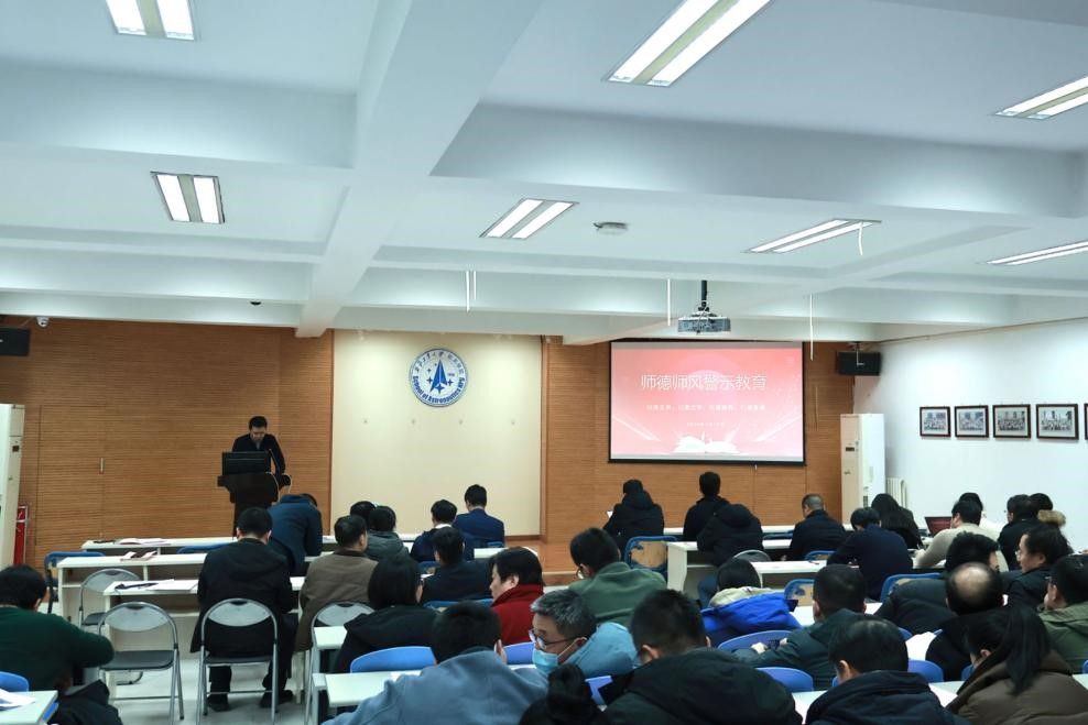 党委副书记韩冬带领大家重温师德规范,学习《新时代高校教师职业行为十项准则》、《西北工业大学师德失范行为负面清单》,并做警示教育。