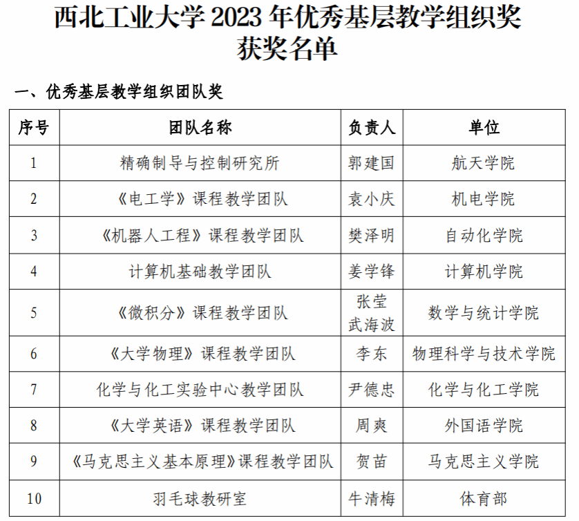 精确制导与控制研究所获首批“西北工业大学优秀基层教学组织团队奖”!