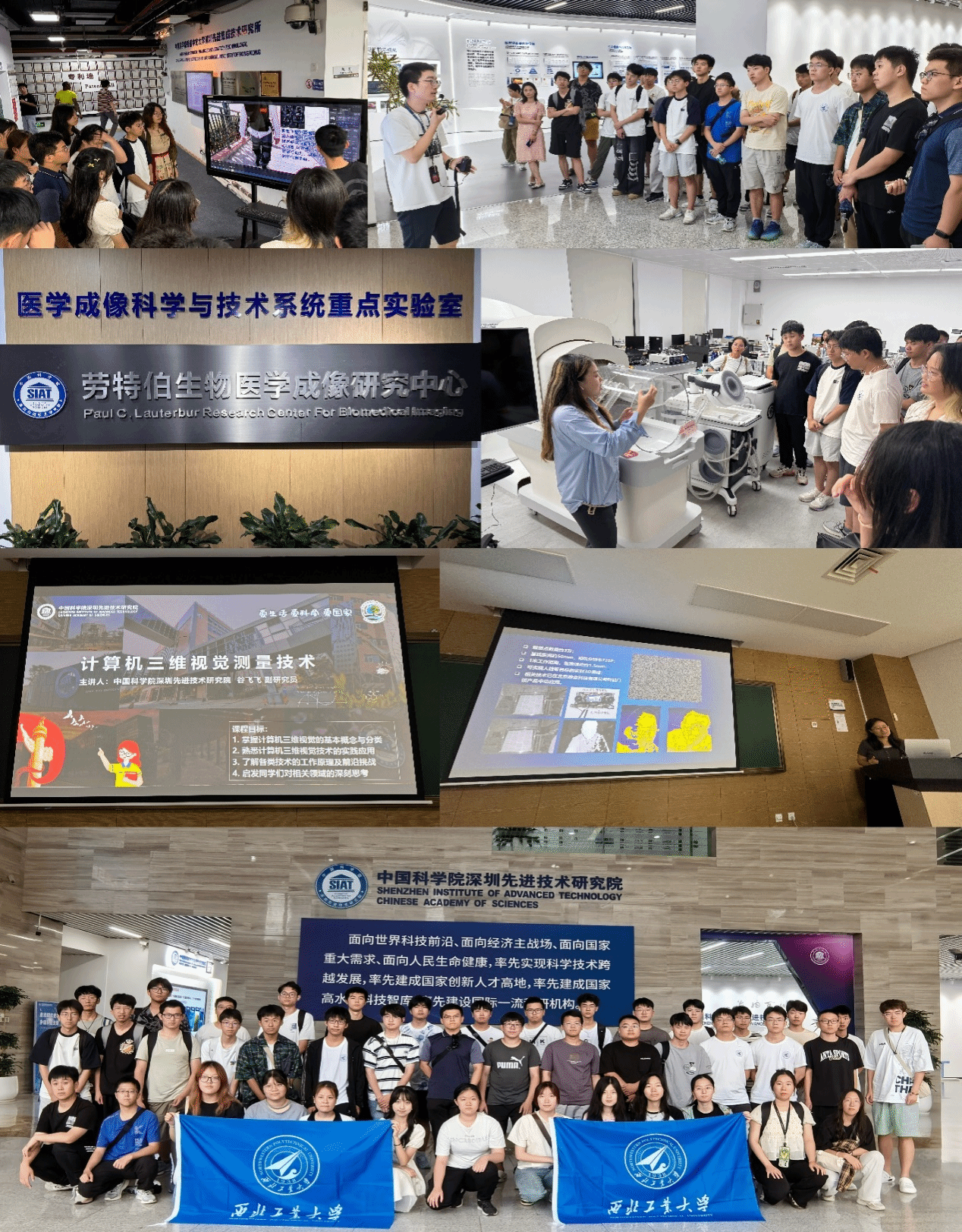 深圳先进技术研究院学术交流。在深圳先进院的老师与学生的带领下,同学们参观了深圳先进院的两个重点实验室,了解了外骨骼的发展与现况,并体验了深圳先进院自己研发的外骨骼产品,将科幻带进现实,丰富了同学们的见识;同学们也了解了如今先进医疗产品的功能以及使用原理,丰富理论知识,拓宽了同学们的思维;最后由谷飞飞老师以“计算机三维视觉测量技术”为主题的报告结尾,向同学们介绍了一些三维视觉测量技术与具体的成像算法,丰富了同学们的专业知识,拓宽了同学们的创新思维,激发了同学们对于三维视觉领域的兴趣。