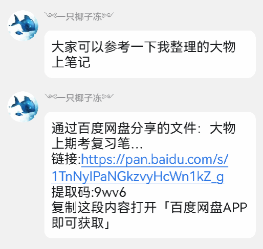 为强化帮扶实效,导师团队同步搭建“线上资源共享平台”:负责大物答疑的小导师丁余通过百度网盘分享自己整理的《大物上期末考复习笔记》,清晰的知识脉络和重难点整理,成为同学们复习时的 参考宝典。复制下方链接到百度网盘打开 ,即可一键保存复习干货: