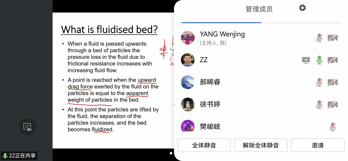 本课程由Zong yan ZHOU教授在线讲授,课程内容涵盖了能源工程中微米到毫米范围粉体的属性、相互作用、固定床与流化床工作原理、输送技术以及数值模拟方法等。周教授的授课充分考虑了学生的英文水平和参与性,对关键词汇突出讲解,并采取主动式关注与互动式交流,随时与同学们讨论课程难点与科学前沿。为加强教学效果,课程还设置了学生大作业汇报环节,并结合出勤互动情况进行综合评价,有效锻炼了学生分析总结问题及学术交流的能力。