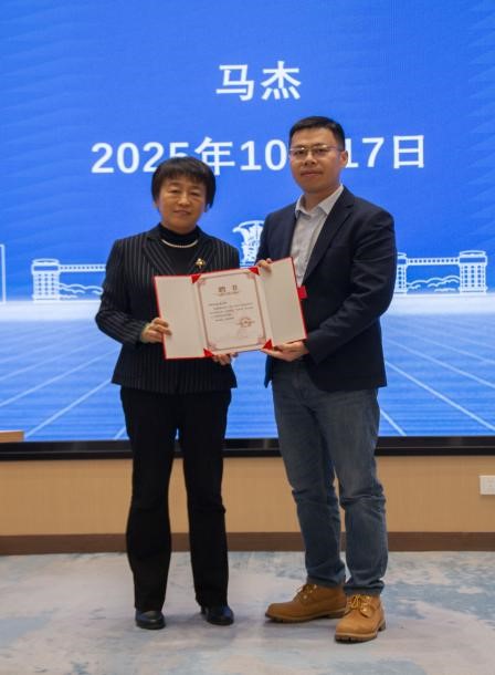 党委副书记韩冬同志向马杰老师颁发西北工业大学成人直播